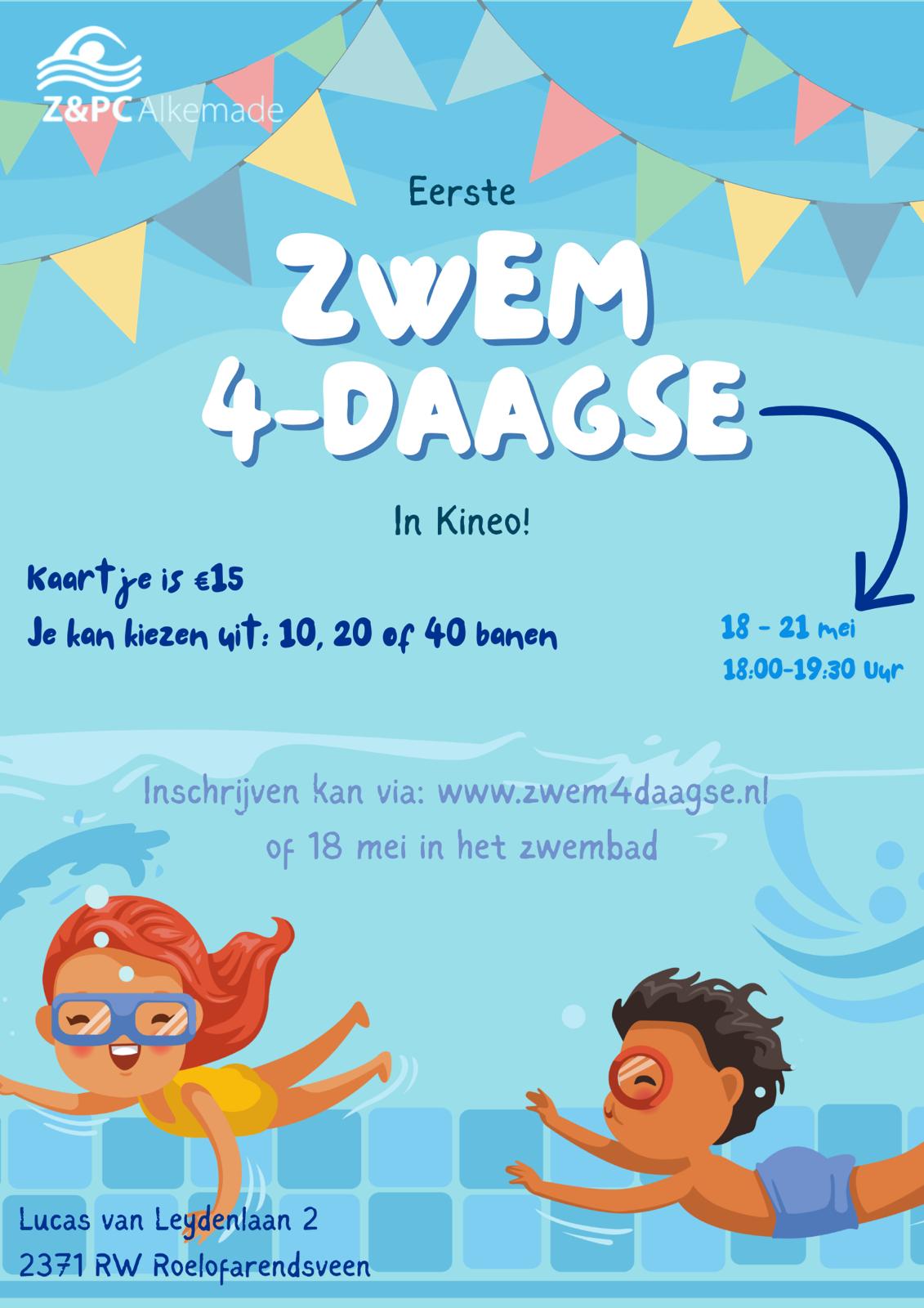 Zwem4Daagse Z&PC Alkemade in Kineo 18-5-2026 t/m 21-5-2026 18:00 – 19:30 uur